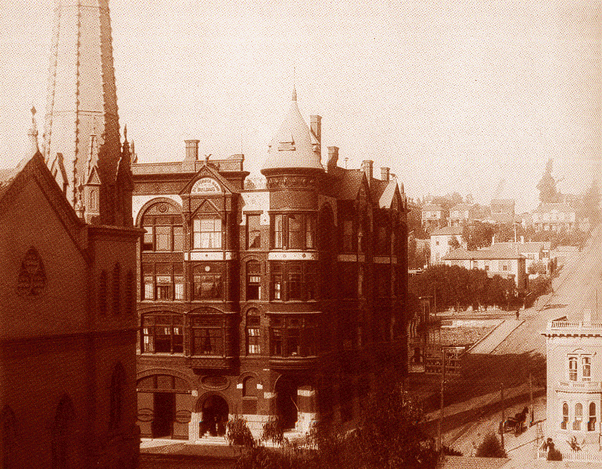 in 1886, this four-story, brick exterior Gothic Revival Victorian