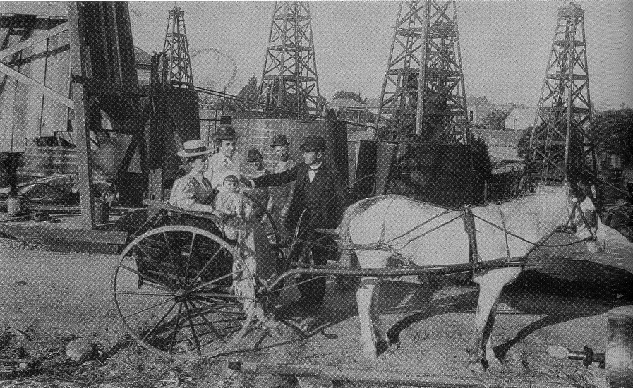 The Witmer brothers had sold one of their lots on West Second Street to Edward L. Doheny and his partner Charles A. Canfield. It was on that lot in 1892 that oil was discovered. Entries in the Witmer Brothers' Ledger Book No. 4, indicate the purchase of oil shares from several oil companies which no doubt sprang from the Doheny-Canfield strike. Beginning in 1896 names such as American Crude Oil, Belmont Oil, Far West Oil, appear in the ledger.